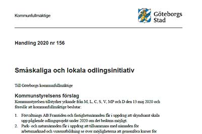 Första steget är Kommunstyrelsens förslag till Kommunfullmäktige. Sedan blir det upp till förvaltningarna att hitta vägar för att stödja och skapa möjligheterna för ökad lokal odling.
