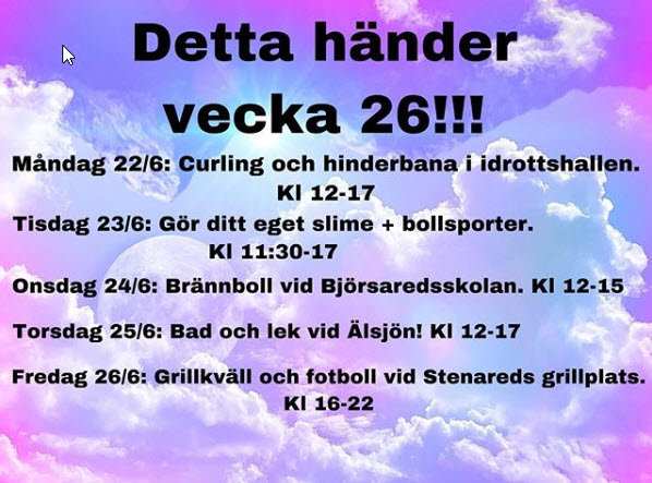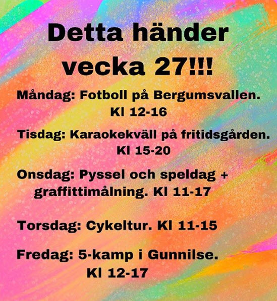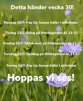 Inför nästa vecka vankas det kareoke, pyssel och sällskapsspel, men också utomhushäng med bollsporter och cykeltur.