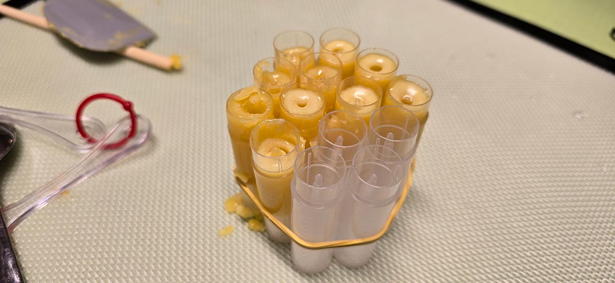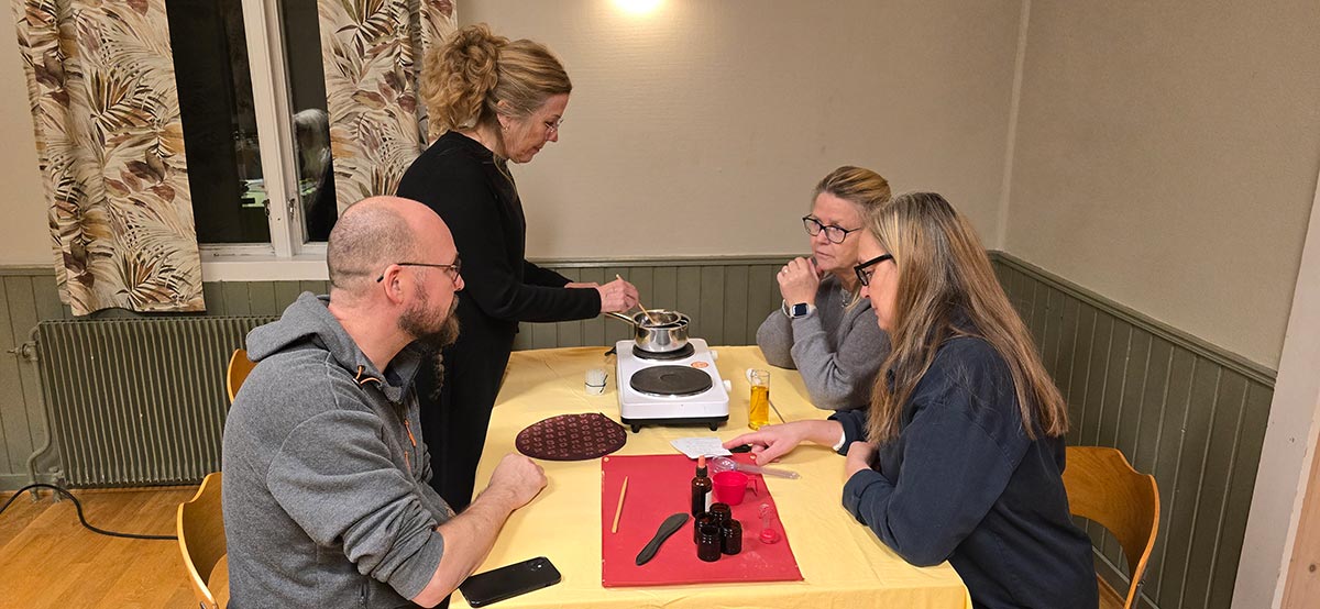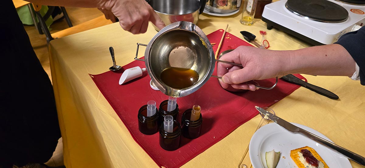 Mycket fokus på rätt temperatur och försiktigt rörande när man tillsätter oljor, honung, propolis, parfymer, mineraler mm. Allt för att göra just den perfekta salvan eller det perfekta ceratet.